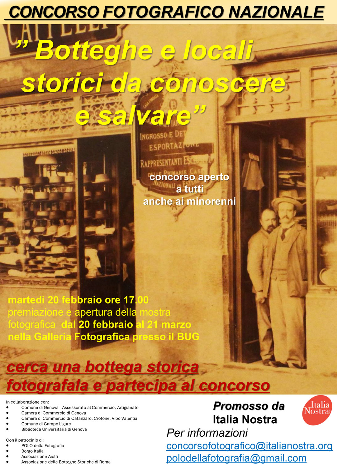 Martedì 20 febbraio alle ore 17:00 nella galleria fotografca del BUG ci sarà la premiazione del concorso "Botteghe e locali storici da conoscere e salvare".